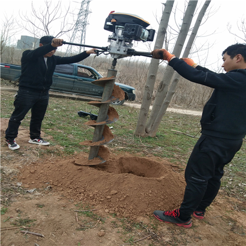 植树挖坑机是一种以汽油机为动力的便捷式挖坑工具,该机器体积小,动力大、方便携带、适合植树造林、果园种植、大棚建设、沙漠绿化等。这是一款非常适合我国地形状况的机器,目前发展、销售、使用空间巨大。挖坑机种树、打桩一机多用,安全可靠,产销一体化,量大从优。质量有保障。植树挖坑机使用效率:使用挖坑机的效率是人工的数十倍,操作每小时不低于80个坑,按一天工作8小时计算,一天可以挖680个坑以上,是人工的30多倍,本厂地钻型号全.质优价廉。随着对环境保护的日益重视以及劳动力成本的提高,机械化植树造林已经成为大势所趋。因此,研制出高性能、低成本的挖坑机,不仅会产生很的经济效益,也会带来良的生态效益和社会效益。可达80CM.是一款新型强力大功率植树挖坑机.