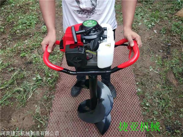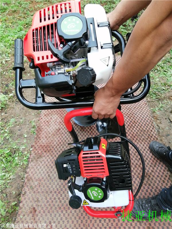 捷亚新款植树挖坑机是由小型汽油机携带,减速机,钻头,油门控制系统,操作手柄等组成的钻孔机型。分为单人操作式和双人操作式。由人工手提前行,机器产生动力,减速机旋转,油门控制速度,钻头旋转,刀片削土,钻尖定位,螺旋叶片进行出土作业的机器,无论是横着钻,竖着钻,平行钻,斜着钻,您想怎样钻都可以,简单方便的运用于各行各业的作业中去,如以下的各种自来水管道,天燃气管道安装铺设穿孔打洞等作业,可带动各种大深度螺旋钻头进行往洞外运送泥土作业,当钻头探入的深度超过全高加冲程后,可以采用正常的冲击手法进行施工,切实保证成孔质量。