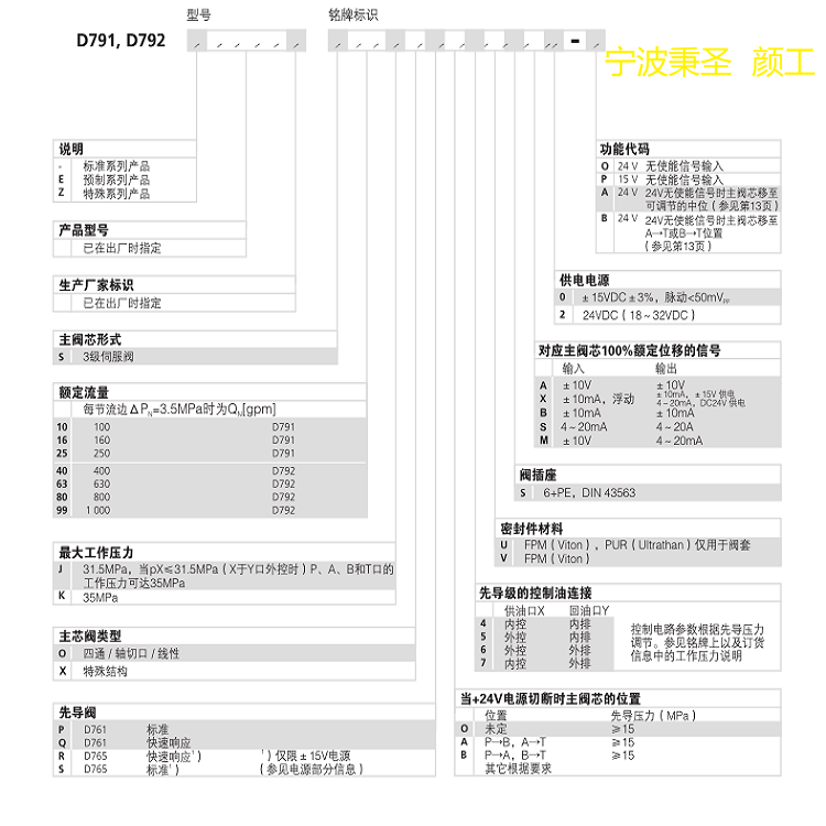 时,档板向右移动,使右边喷嘴的节流作用加强,流量减少,右侧背压上升;同时使左边喷嘴节流作用减小,流量增加,左侧背压下降。阀芯两端的作用力失去平衡, 阀芯遂向左移动。高压油从S流向C2,送到负载。负载回油通过 C1流过回油口,进入油箱。阀芯的位移量与力矩马达的输入电流成正比,作用在阀芯上的液压力与弹簧力相平衡,因此在平衡状态下力矩马达的差动电流与阀芯的位移成正比。如果输入的电流反向,则流量也反向。表中是伺服阀的分类。