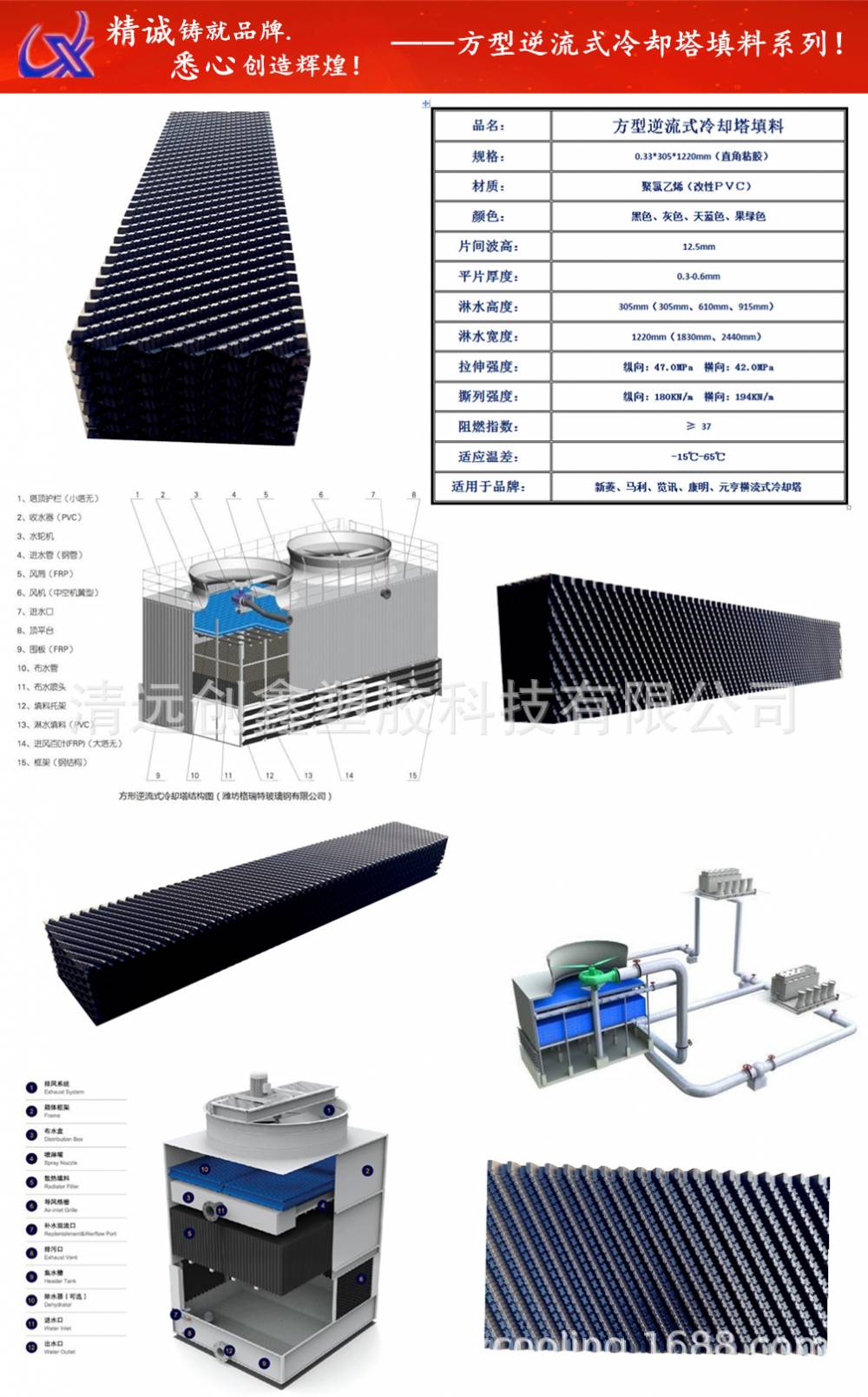 一、产品特点:具有重量轻,强度大,阻燃性能好、耐腐蚀,设计***,通风阻力小,亲水性强,接触面积大等特点。