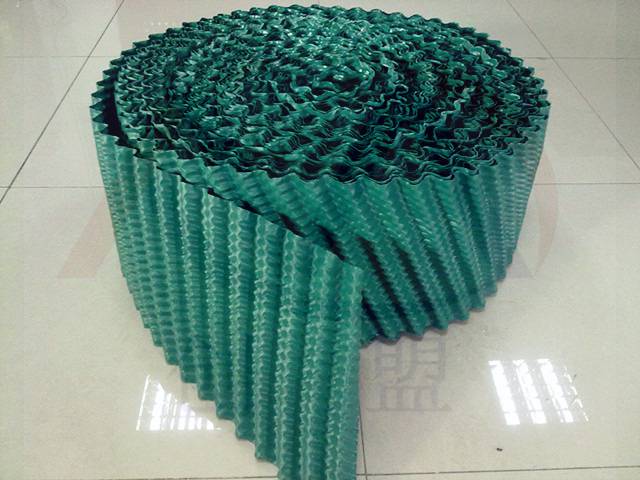 4.本公司生产的冷却塔PVC淋水填料主要型号分为:圆形逆流式冷却塔填料,方形逆流式冷却塔填料,方形横流式冷却塔填料,工业冷却塔填料,密闭式冷却塔填料,蒸发式冷却塔填料,中央空调冷却塔散热胶片,PVC淋水片材,交错布置,对于塔壁周边异形块可视现场布置情况,按实际尺寸切割、安装。