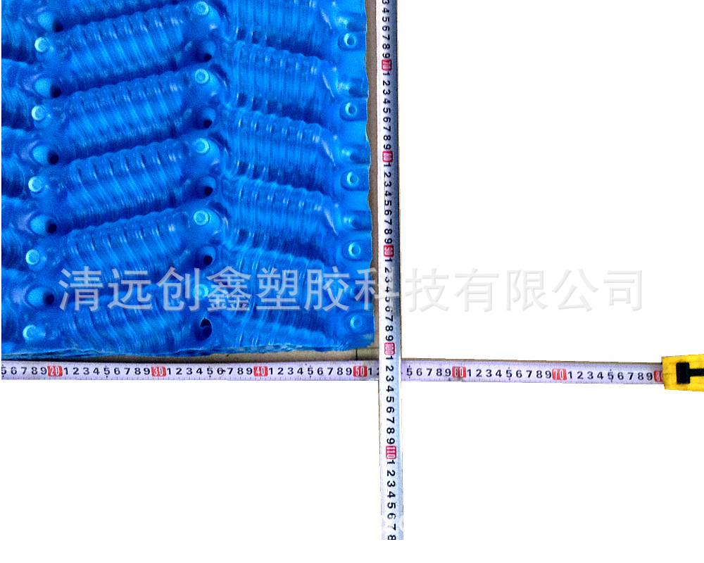 4.本公司生产的冷却塔PVC淋水填料主要型号分为:圆形逆流式冷却塔填料,方形逆流式冷却塔填料,方形横流式冷却塔填料,工业冷却塔填料,密闭式冷却塔填料,蒸发式冷却塔填料,中央空调冷却塔散热胶片,PVC淋水片材,交错布置,对于塔壁周边异形块可视现场布置情况,按实际尺寸切割、安装。