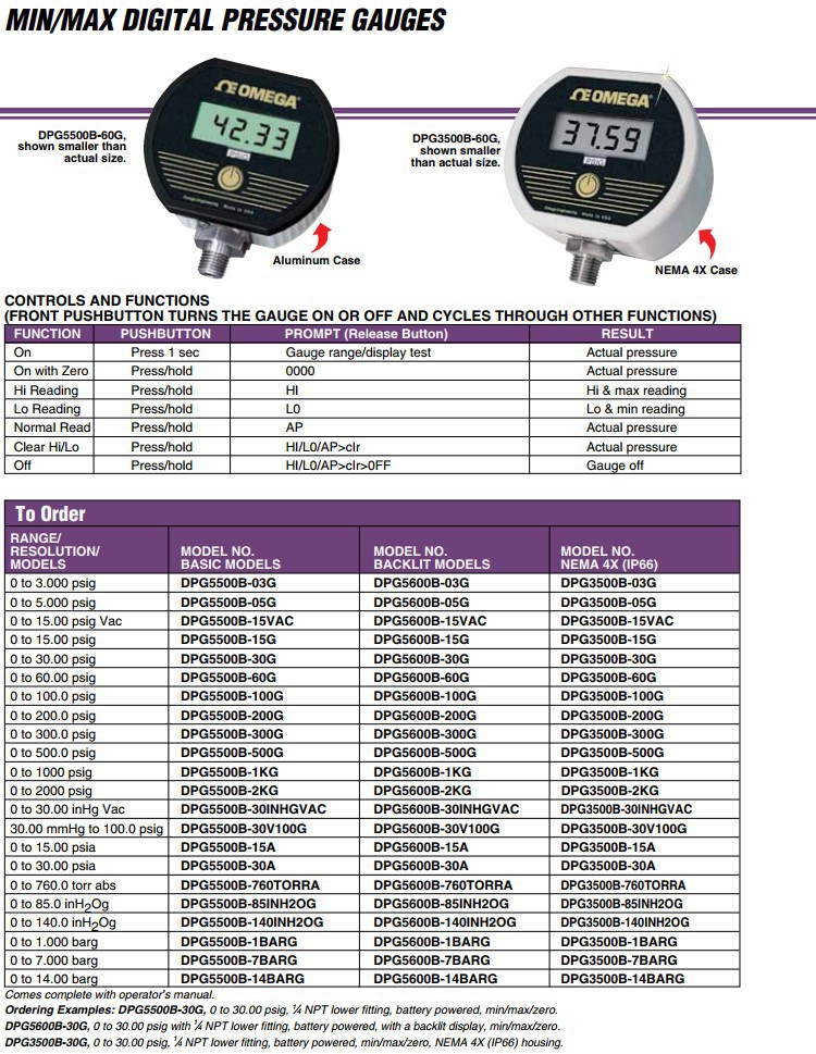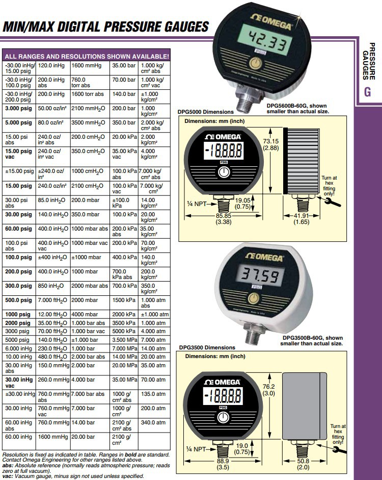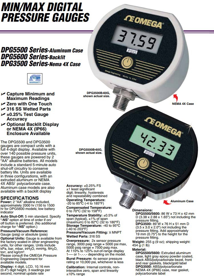 OMEGA奥米佳DPG3500B-14BARG压力表DPG3500B-760TORRA,DPG3600B-14BARG