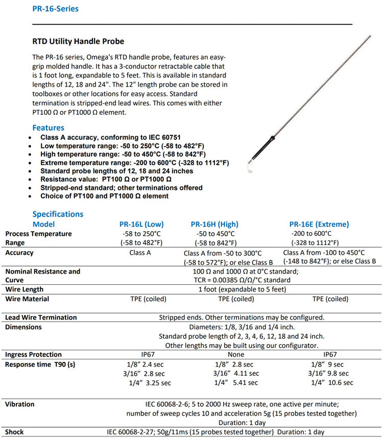 美国OMEGA奥米佳热电阻PR-16L-3-100-1/8-6,PR-16L-3-100-1/4-18-24