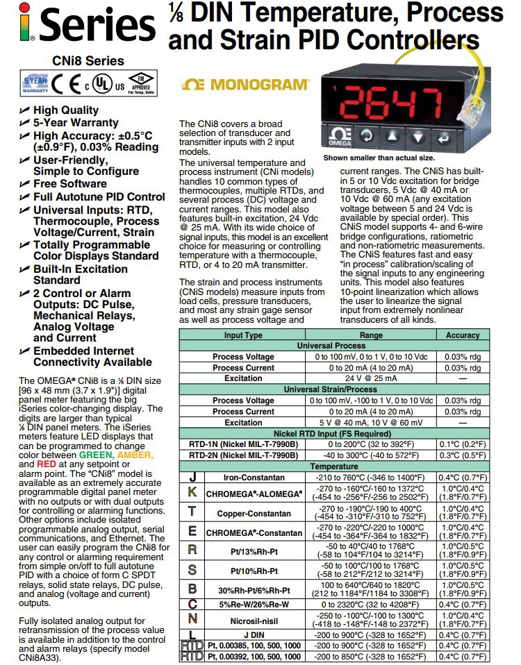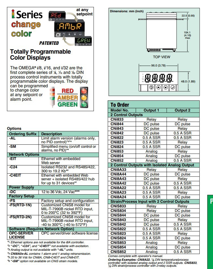 美国OMEGA奥米佳控制器CNI842,CNI843,CNI844-C24-DC-EIT-C4EIT-AL-FS