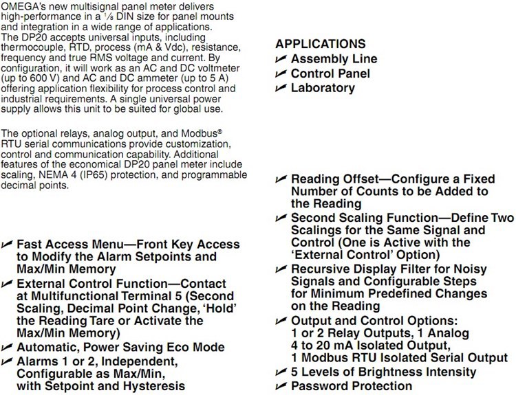 美国OMEGA奥米佳数字控制器仪表DP20,DP20-A1-A2,DP20-M1,DP20-S1-A2
