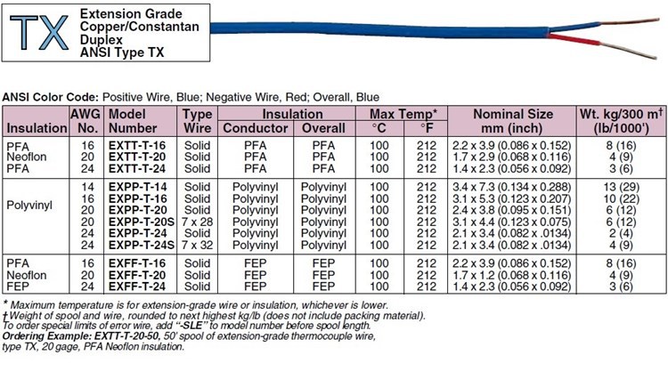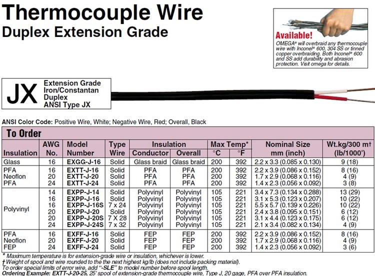 OMEGA奥米佳热电偶线EXTT-J-16-1000,EXTT-J-20-1000,EXTT-J-24-1000