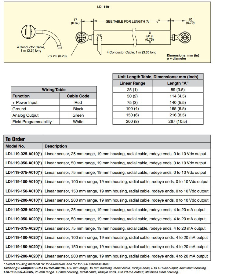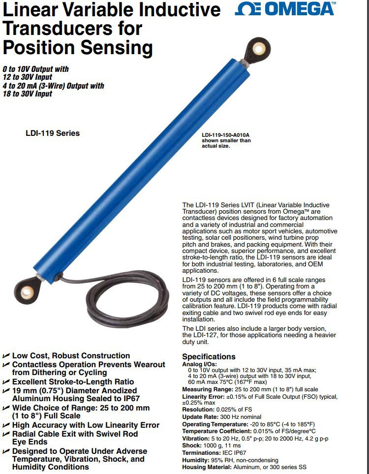 美国OMEGA奥米佳位移传感器LDI-119-150-A010A,LDI-119-200-A020A