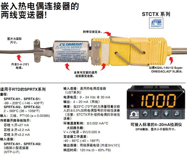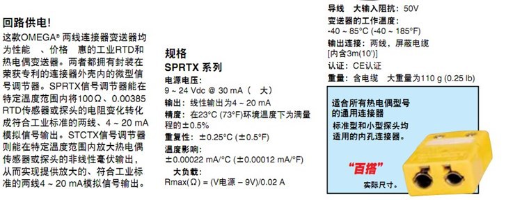美国OMEGA奥米佳热电阻变送器SPRTX-M1,SPRTX-M2,SPRTX-S1,SPRTX-S2