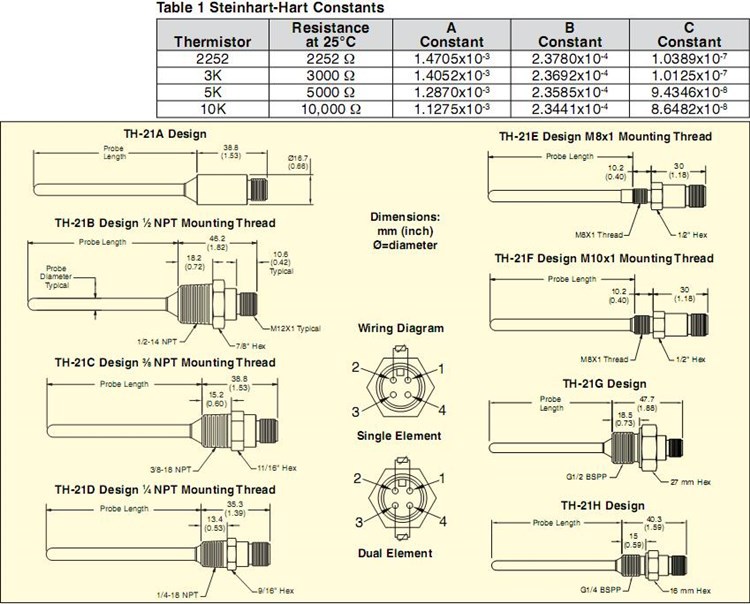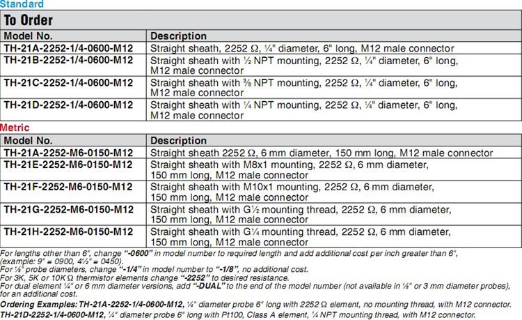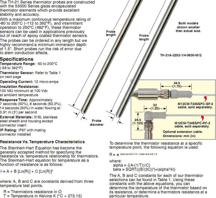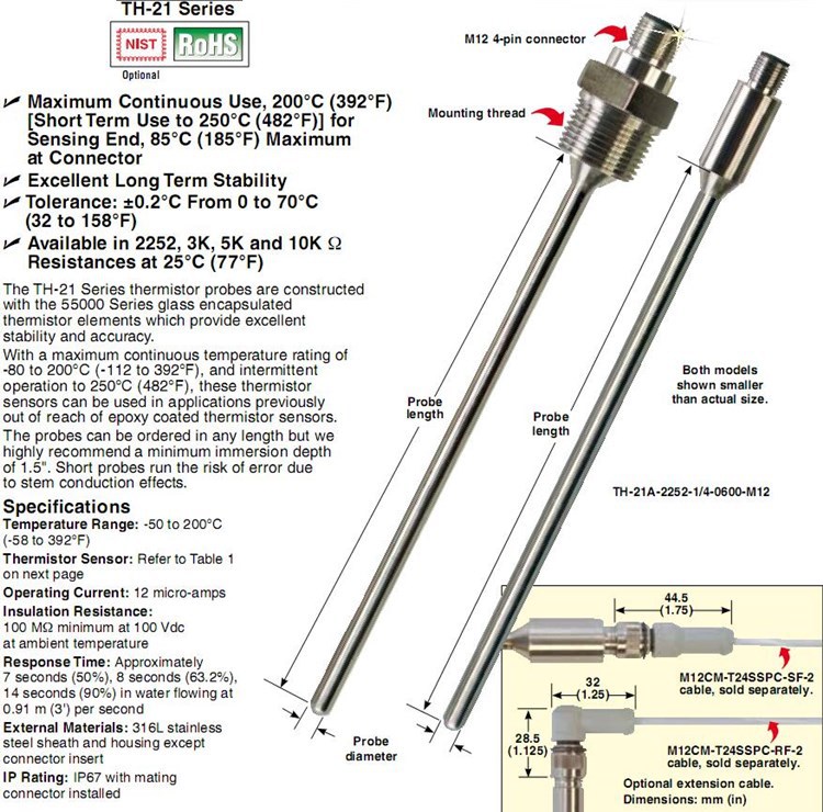 OMEGA奥米佳TH-21A-10K-1/4-0600-M12热敏电阻TH-21B-10K-1/4-0600-M12