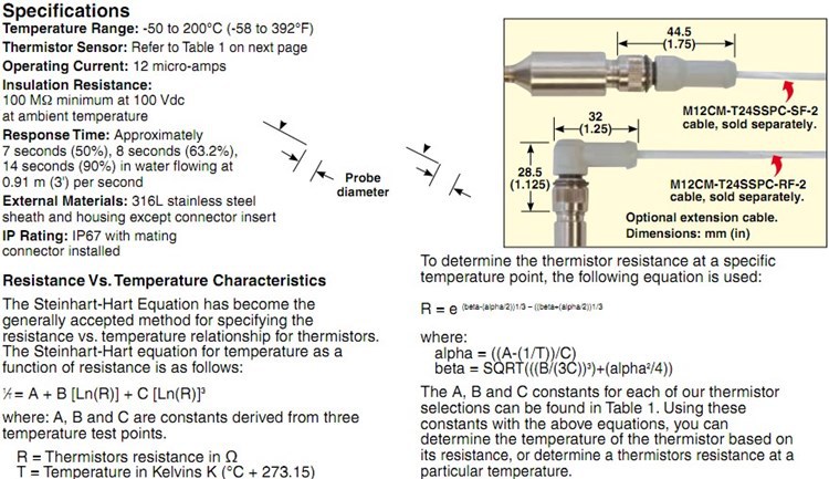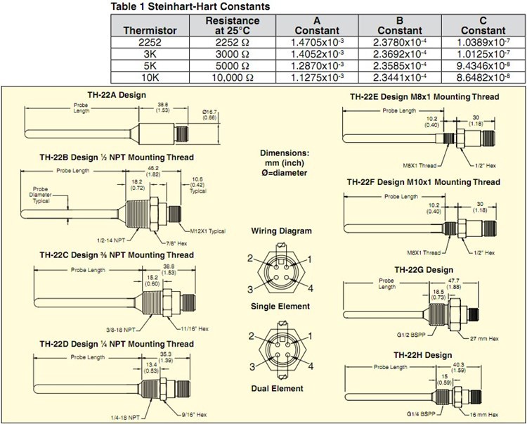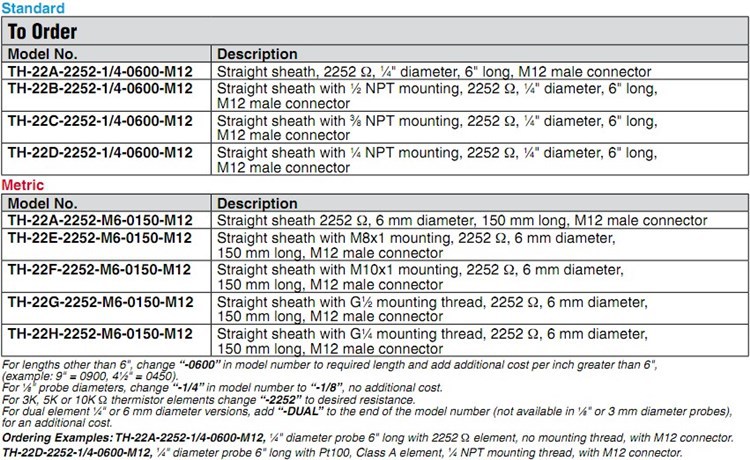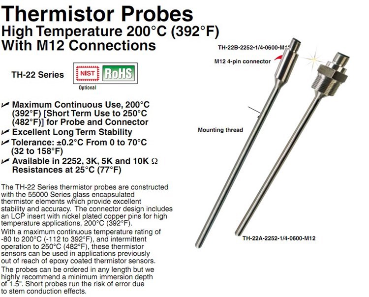 美国OMEGA奥米佳热敏电阻TH-22A-22E-22F-22H-2252-M6-0150-M12