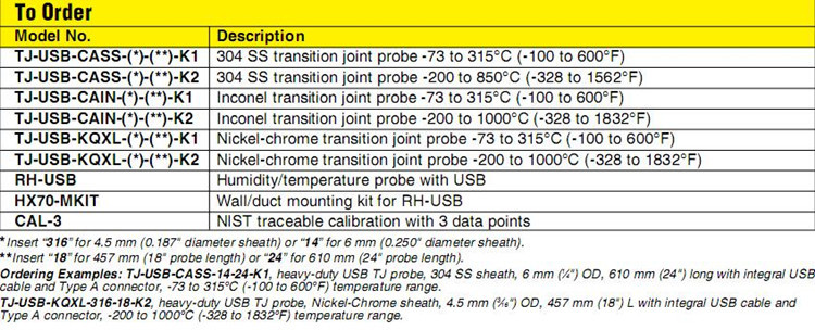美国OMEGA奥米佳热电偶TJ-USB-CAIN-14-18-K1,TJ-USB-CAIN-316-24-K2