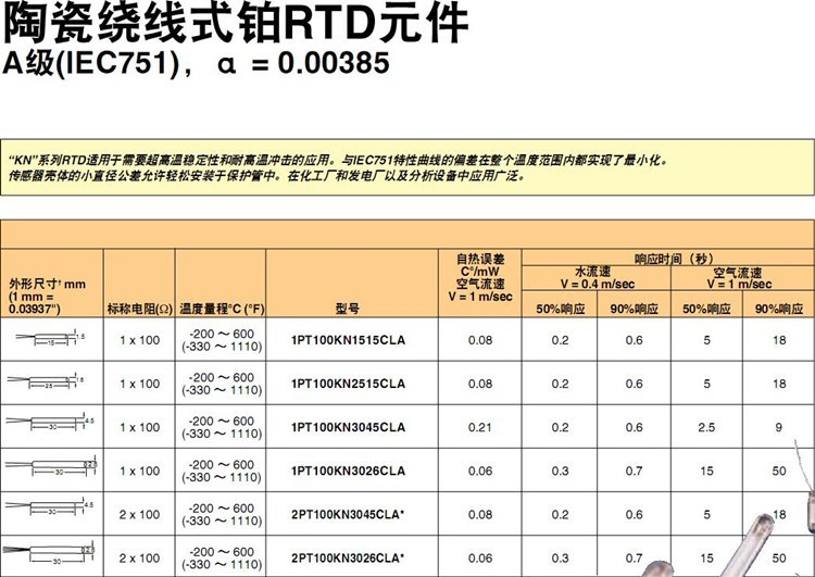 美国OMEGA奥米佳热电阻元件2PT100K2517,2PT100KN3045,2PT100KN3026
