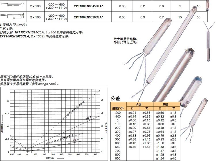 OMEGA奥米佳热电阻1PT100KN3045CLA,1PT100KN3026CLA,2PT100KN3045CLA