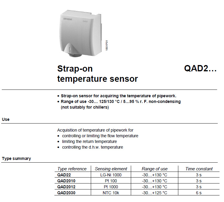 SIEMENS西门子卡箍式温度传感器QAD22,QAD2010,QAD2012,QAD2030