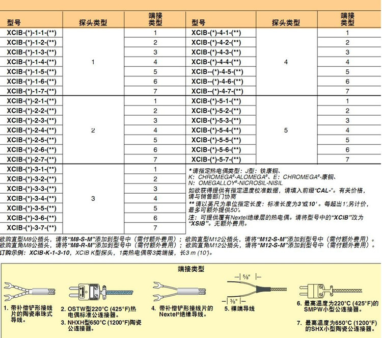 美国OMEGA奥米佳热电偶XCIB-J-1-1-3,XCIB-J-1-4-10,XCIB-J-1-5-6-7-3