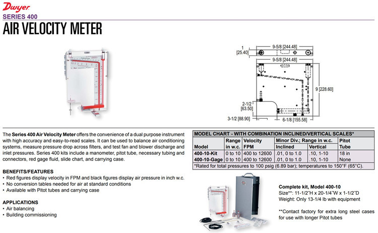 美国Dwyer德威尔风速测量套件400-10-Gage,400-10-Kit,400-23-Kit
