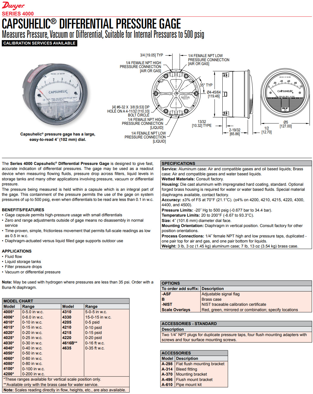 CAPSUHELIC美国DWYER德威尔差压表4205,4210,4215,4220,4500,4635