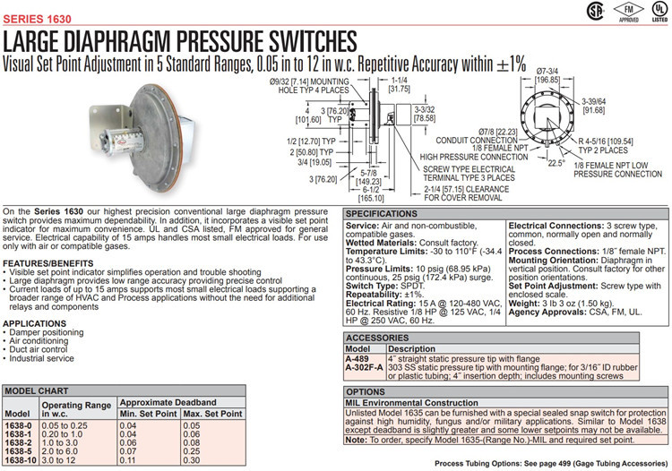 美国Dwyer德威尔差压开关1638-0,1638-1,1638-2,1638-5,1638-10