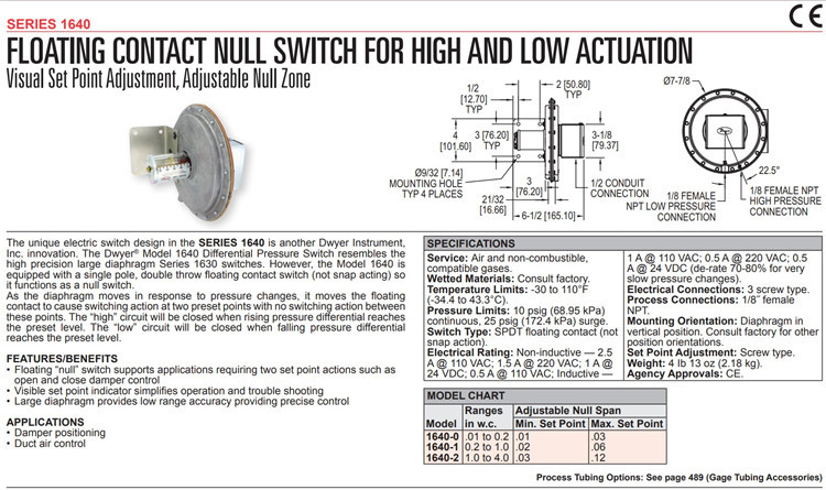 美国Dwyer德威尔1640系列差压开关1640-1.5KPA,1640-3KPA