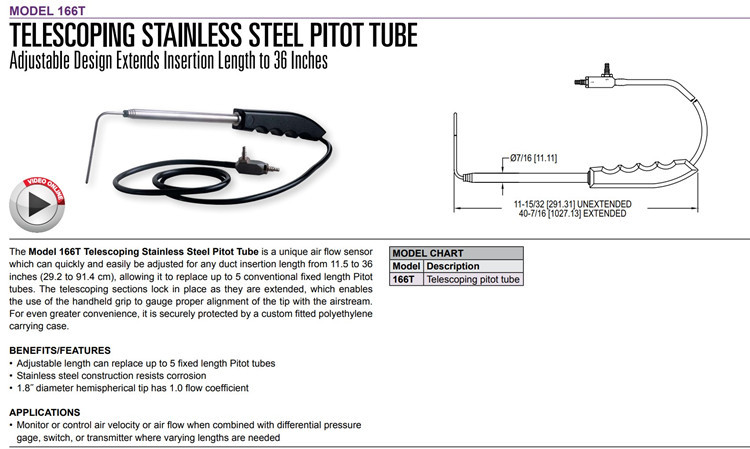美国Dwyer德威尔可伸缩不锈钢皮托管166T