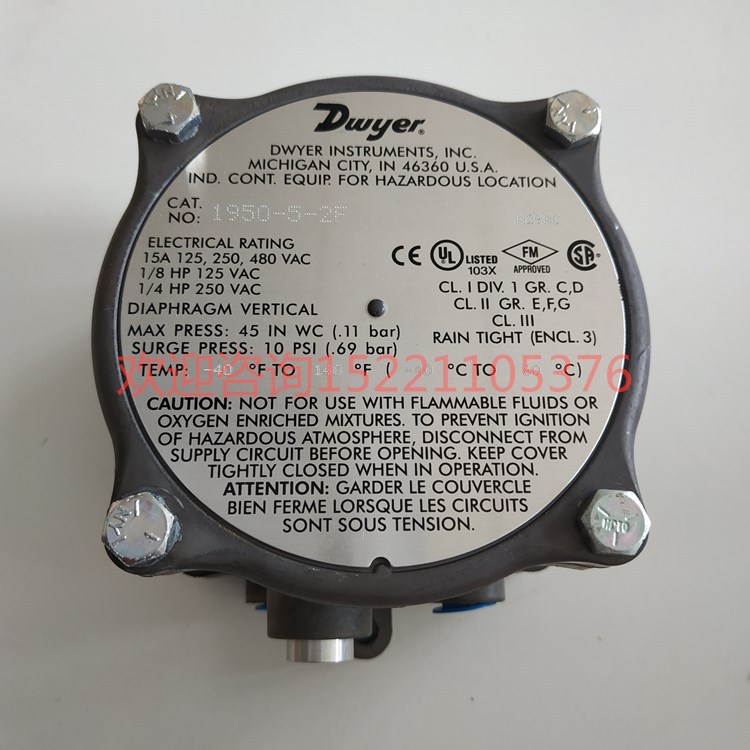 美国Dwyer德威尔防爆差压开关1950-5-2F,1950-10-2F,1950-20-2F