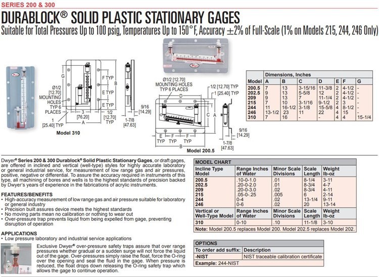 美国Dwyer德威尔压力计差压表200.5,202.5,209,215,244,246,310