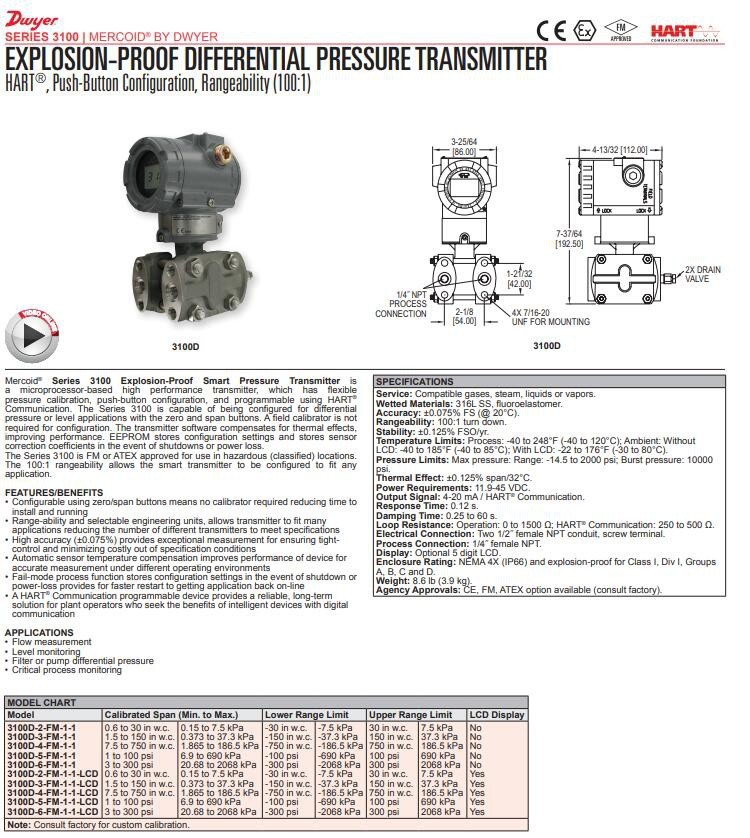 Dwyer德威尔差压变送器3100D-5-FM-1-1-LCD,3100D-6-FM-1-1-LCD