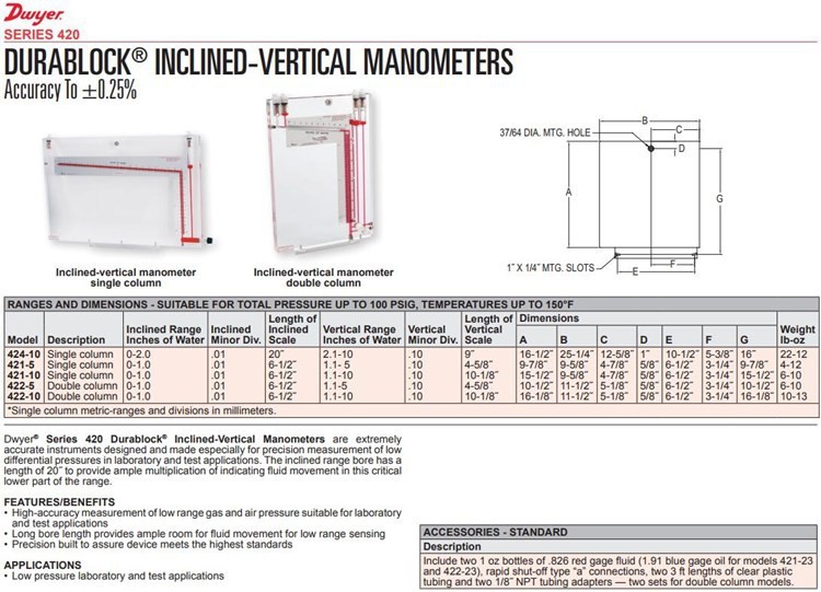 美国Dwyer德威尔红油差压力计421-5,421-10,422-5,422-10,424-10