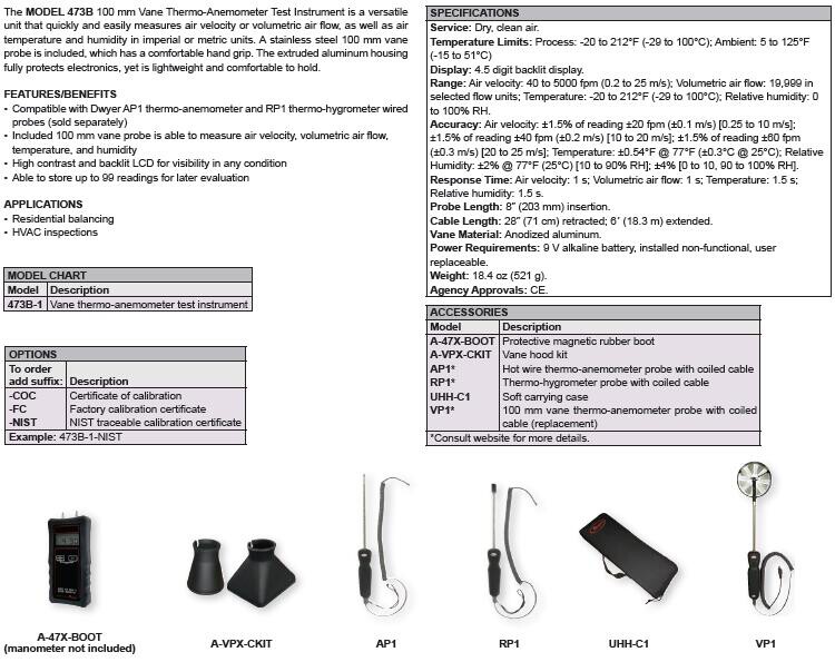 美国Dwyer德威尔叶片式风速计手持式叶轮风速计473B-1