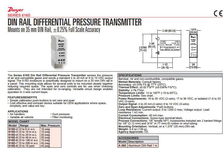 美国dwyer德威尔差压变送器616D-2,616D-3,616D-4,616D-5
