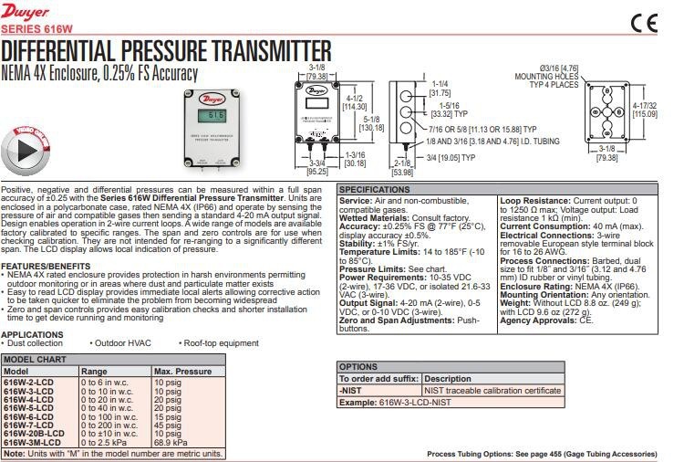 美国Dwyer德威尔差压变送器616W-3M-LCD,616W-20B-LCD,616W-4-LCD