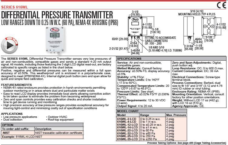 美国Dwyer德威尔差压变送器616WL-14-LCD,616WL-22-LCD