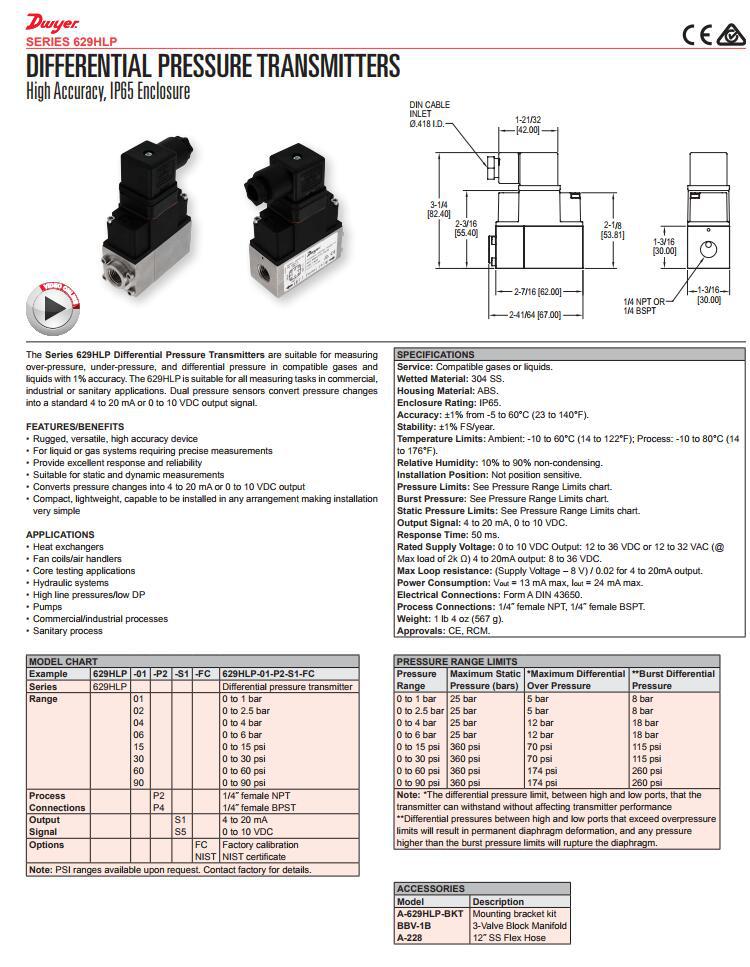 美国Dwyer德威尔差压变送器629HLP-60-P2-S1,629HLP-60-P2-S5
