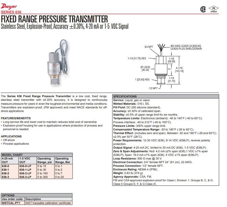 美国Dwyer压力变送器636-0,636-1,636-3,636-4,636-5,636-6,636-7
