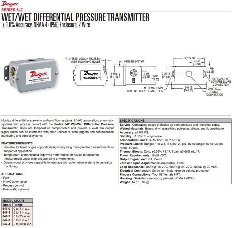 美国Dwyer德威尔差压变送器647-5,647-6,647-7,647-8