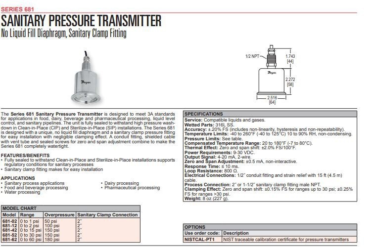 美国Dwyer德威尔压力变送器681-101,681-22,681-32,681-51,681-72