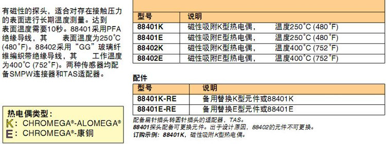 美国OMEGA奥米佳磁性吸附热电偶探头88401K,88401E,88402K,88402E-RE