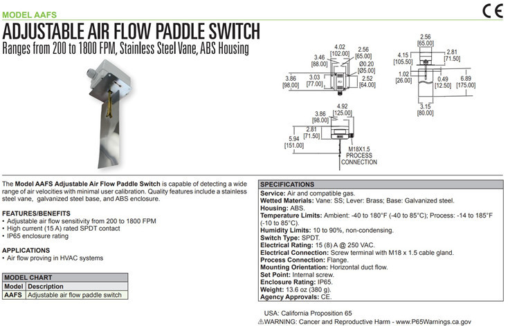 美国Dwyer德威尔靶式挡片挡板式空气流速风速开关AAFS