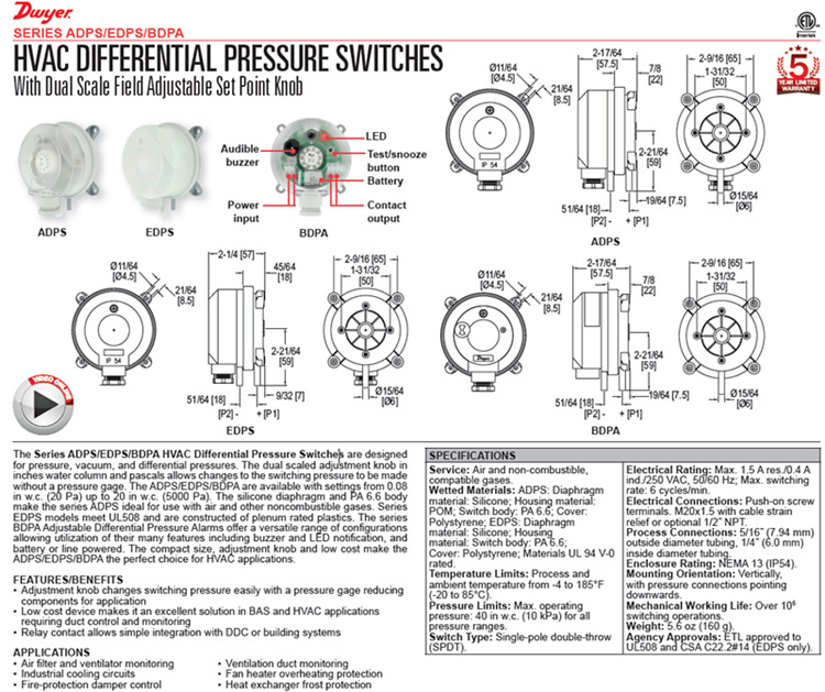 美国Dwyer德威尔差压开关ADPS-05-2-N,ADPS-06-2-N,ADPS-07-2-N