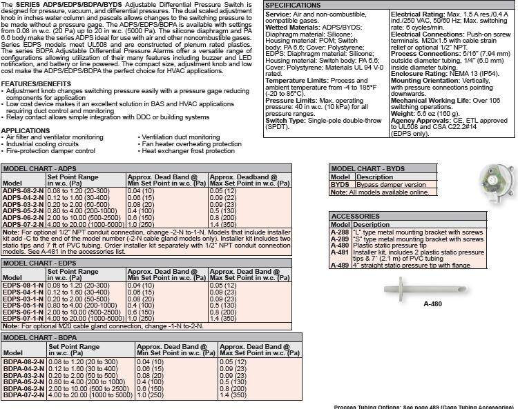 美国DWYER德威尔差压开关BDPA-03-2-N,BDPA-04-2-N,BDPA-05-2-N