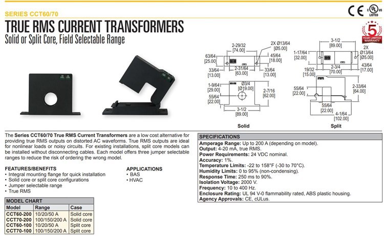 Dwyer德威尔电流传感器CCT60-100,CCT60-200,CCT70-100,CCT70-200