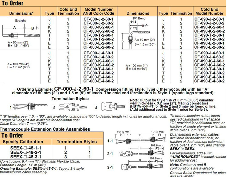 美国OMEGA奥米佳热电偶CF-000-K-2-60-1,CF-000-K-4-60-2-UNGROUNDED