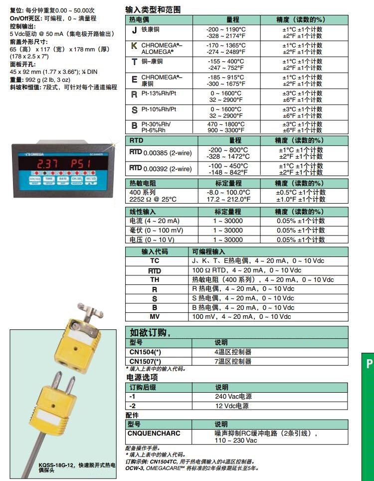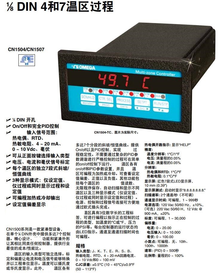 美国OMEGA奥米佳过程控制器CN1504TC,CN1507TC,CN1504RTD,CN1507RTD