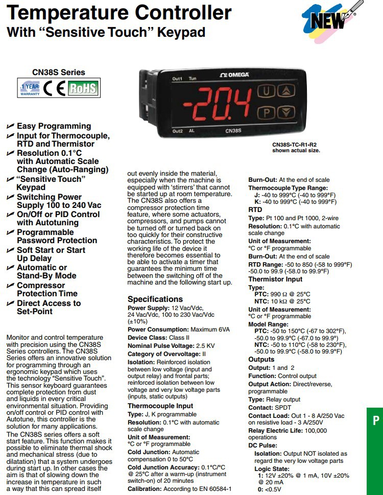 OMEGA温控器CN38S-RTD-R1-R2,CN38S-RTD-DC1-DC2,CN38S-RTD-DC1-R2
