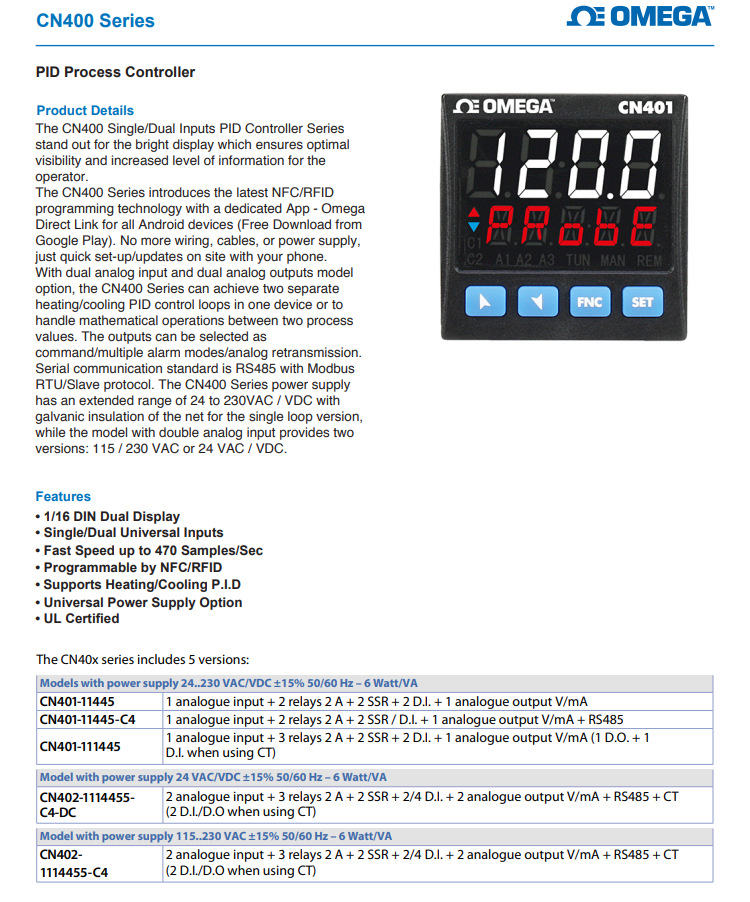 美国OMEGA奥米佳控制器温控器CN401-11445-C4,CN-C4-DC