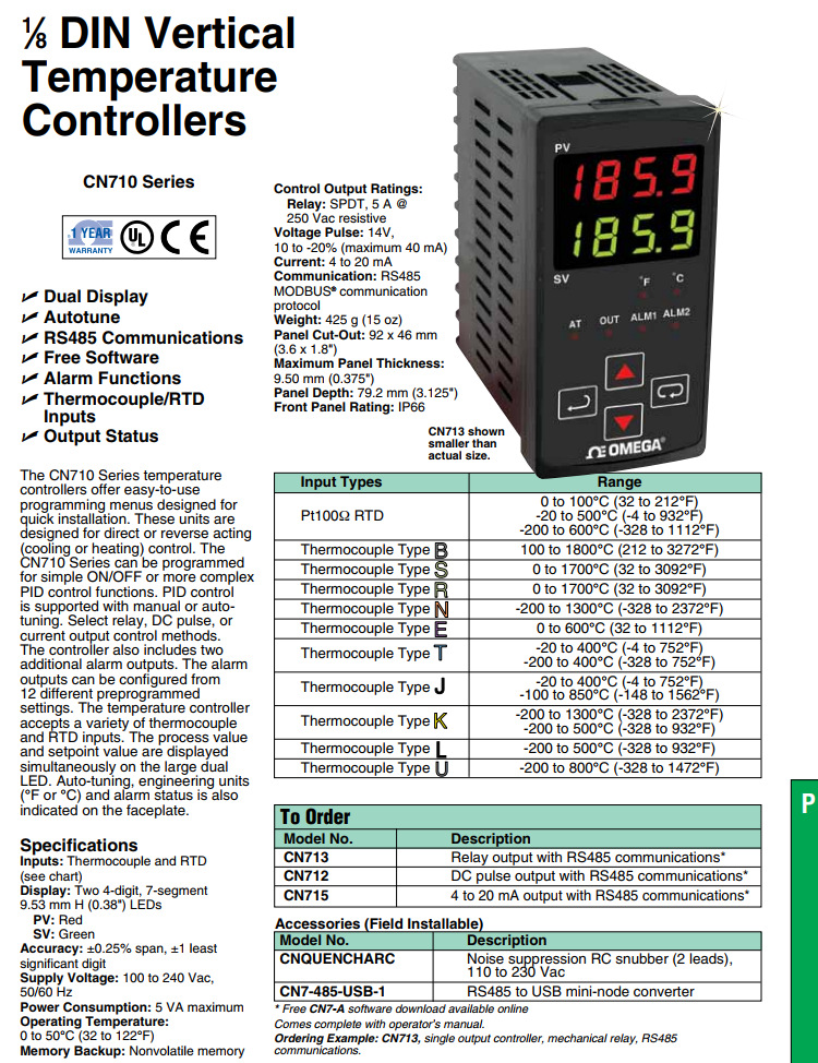 美国OMEGA奥米佳温度控制器CN710系列CN713,CN712,CN715
