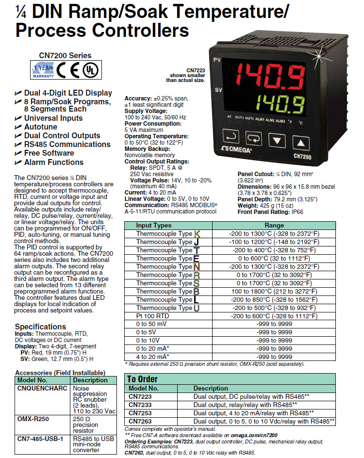 美国OMEGA奥米佳温度控制器CN7200系列CN7223,CN7233,CN7253,CN7263