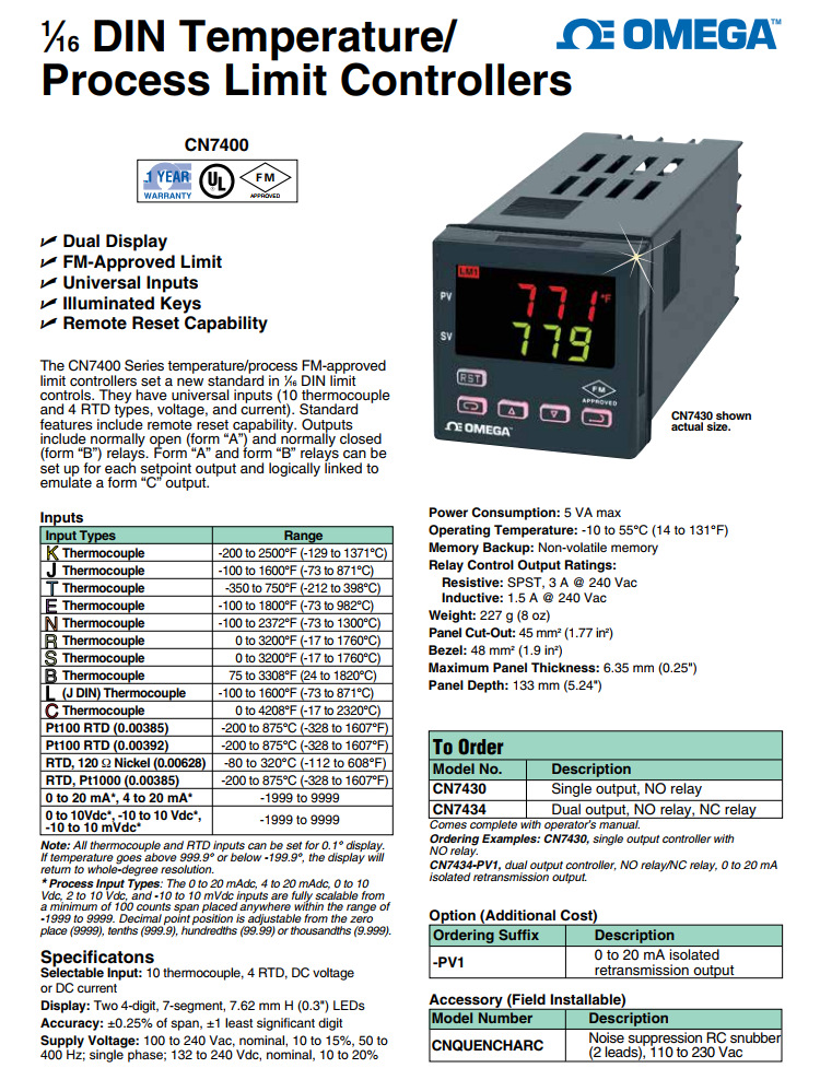 美国OMEGA奥米佳过程和温度控制器CN7400系列CN7430,CN7434