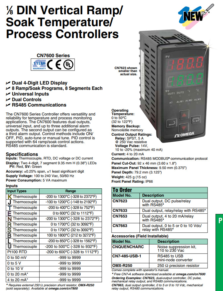 美国OMEGA奥米佳温度控制器CN7600系列CN7623,CN7633,CN7653,CN7663